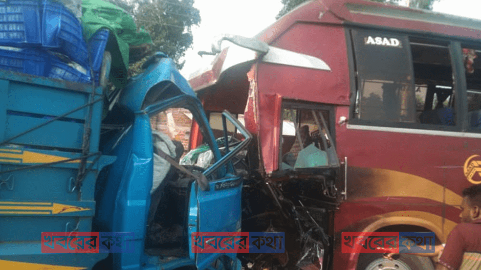 দিনাজপুরে লিচুবাহী ট্রাক ও বাসের মুখোমুখি সংঘর্ষ, নিহত ১