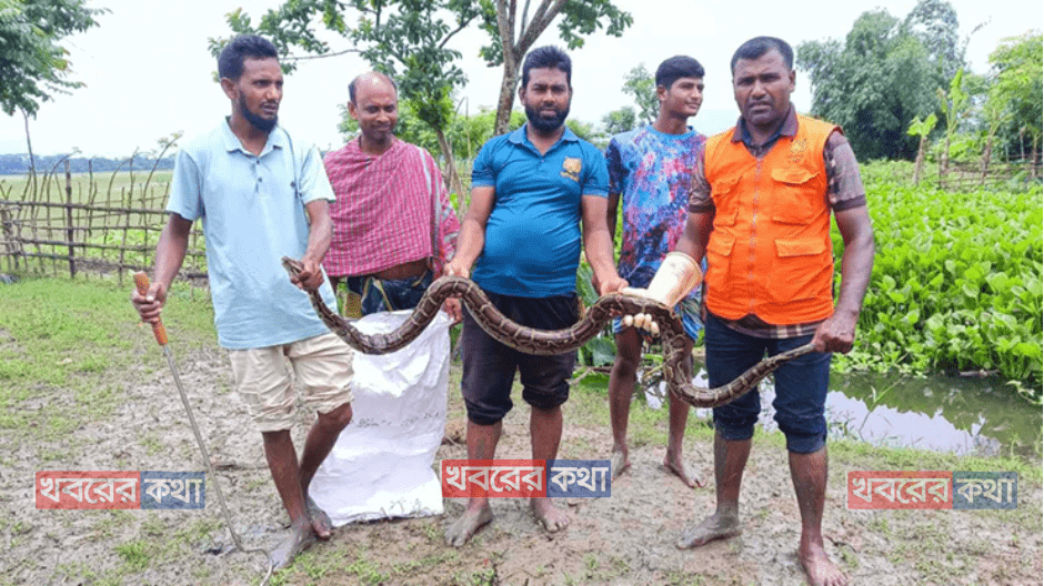 বাগেরহাটে লোকালয়ে ঢুকে পড়া বিশাল অজগর উদ্ধার