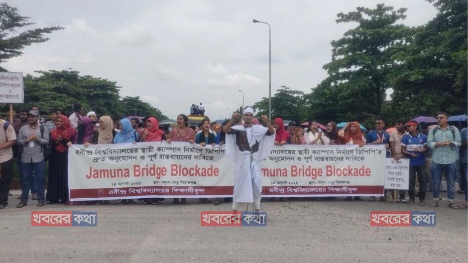 যান চলাচল বন্ধ, যমুনা সেতুতে শিক্ষার্থীদের ব্লকেড