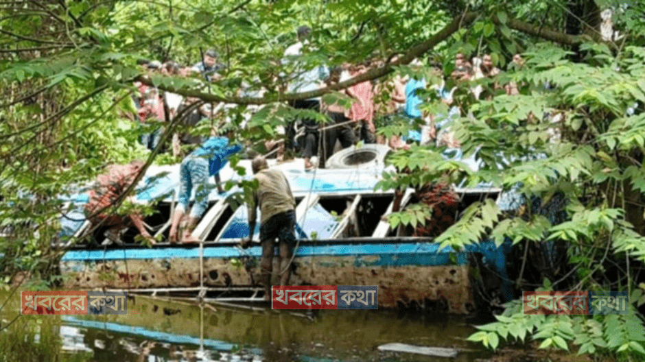 ঝিনাইগাতীতে বাস পুকুরে উল্টে তিন মাসের শিশুর মৃত্যু, আহত অন্তত ২০