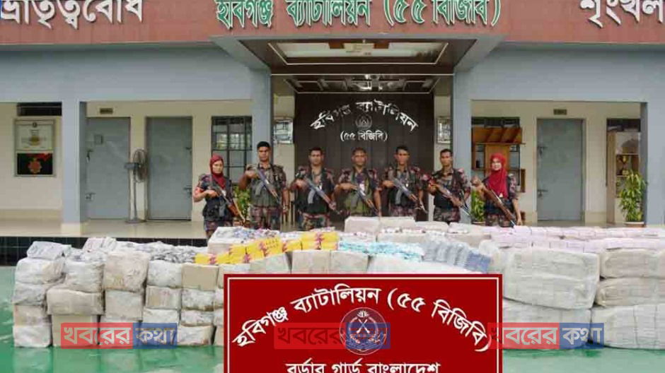 হবিগঞ্জে ট্রাক থেকে ১ কোটি ৩২ লক্ষ টাকার ভারতীয় চোরাই মালামাল জব্দ