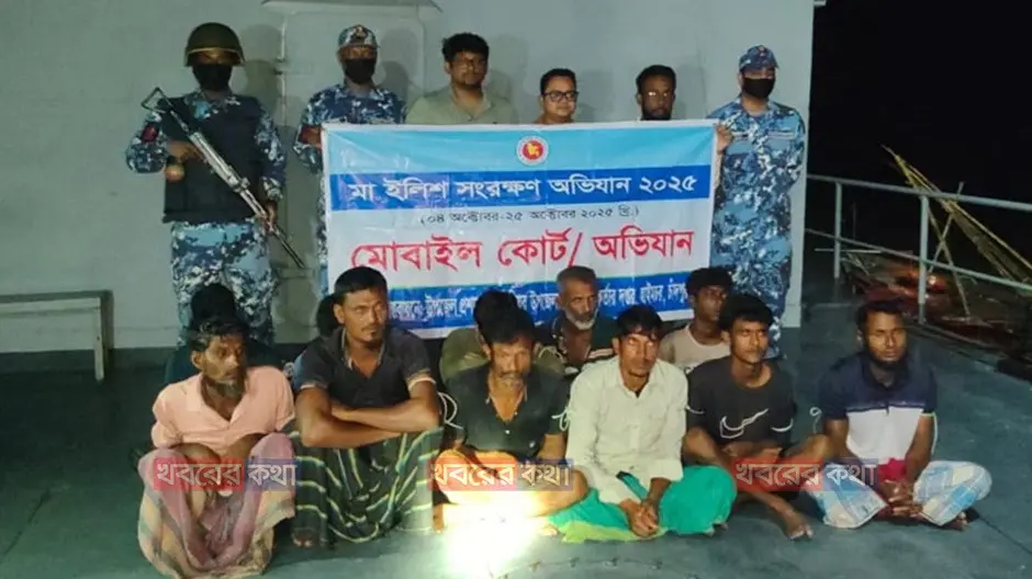হাইমচরে মেঘনায় অবৈধভাবে ইলিশ শিকারে ১১ জেলে আটক