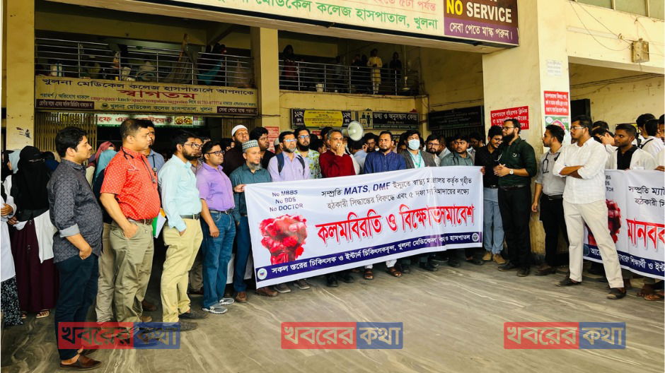 খুলনায় চিকিৎসকদের আন্দোলন: ‘ডাক্তার’ পদবি ও স্বাস্থ্যখাতে সংস্কারের পাঁচ দফা দাবিতে বিক্ষোভ