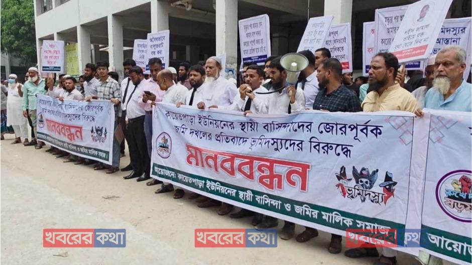 বিক্ষোভে অংশগ্রহণকারীরা জানান, কায়েতপাড়ার কয়েকটি গ্রামে ‘আবাসন প্রকল্প’-এর নামে জমি না কিনেই প্রভাবশালী মহল বেআইনিভাবে কৃষি জমি দখলের অপচেষ্টায় লিপ্ত। ফসল কেটে নেয়ার সুযোগ না দিয়েই তারা রাতের আঁধারে জমিতে ড্রেজার বসিয়ে বালু ভরাট করছে। এমনকি গ্রামের খেলার মাঠ ও চলাচলের রাস্তাও দখল করে নেয়া হচ্ছে।