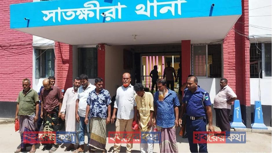 গ্রেপ্তারকৃত ব্যক্তিরা: আজাহার আলী (৬৭) – বাড়ির মালিক, পলাশপোল, তুহিন (৪৫) – কুলিয়া, দেবহাটা, আলাউদ্দিন (৬০) – লোহাকুড়া, কলারোয়া, আতিয়ার রহমান (৬৫) – গয়েশ্বরপুর, সদর, আবু তালেব (৫০) – ধুলিহর, জামাত আলী (৫৫) – রসুলপুর, আবুল কালাম (৫৭) – পুরাতন সাতক্ষীরা, নবাব আলী (৬০) – কামালনগর, মেহের আলী (৫২) – বাঁগআচড়া, যশোর।