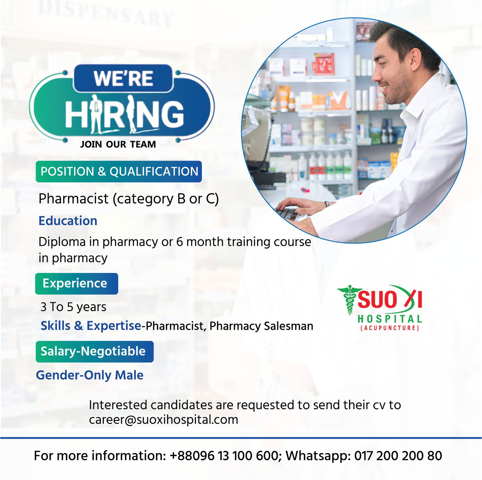 আবেদন করুন: https://suoxigroup.com/jobs/pharmacist-category-b-or-c/