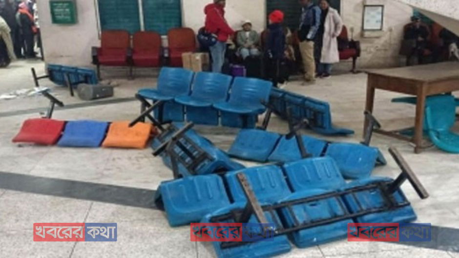 রাজশাহী রেলওয়ে স্টেশনে বিক্ষোভ ও ভাংচুর, যাত্রীরা ফেরত নিয়েছেন টিকিটের টাকা