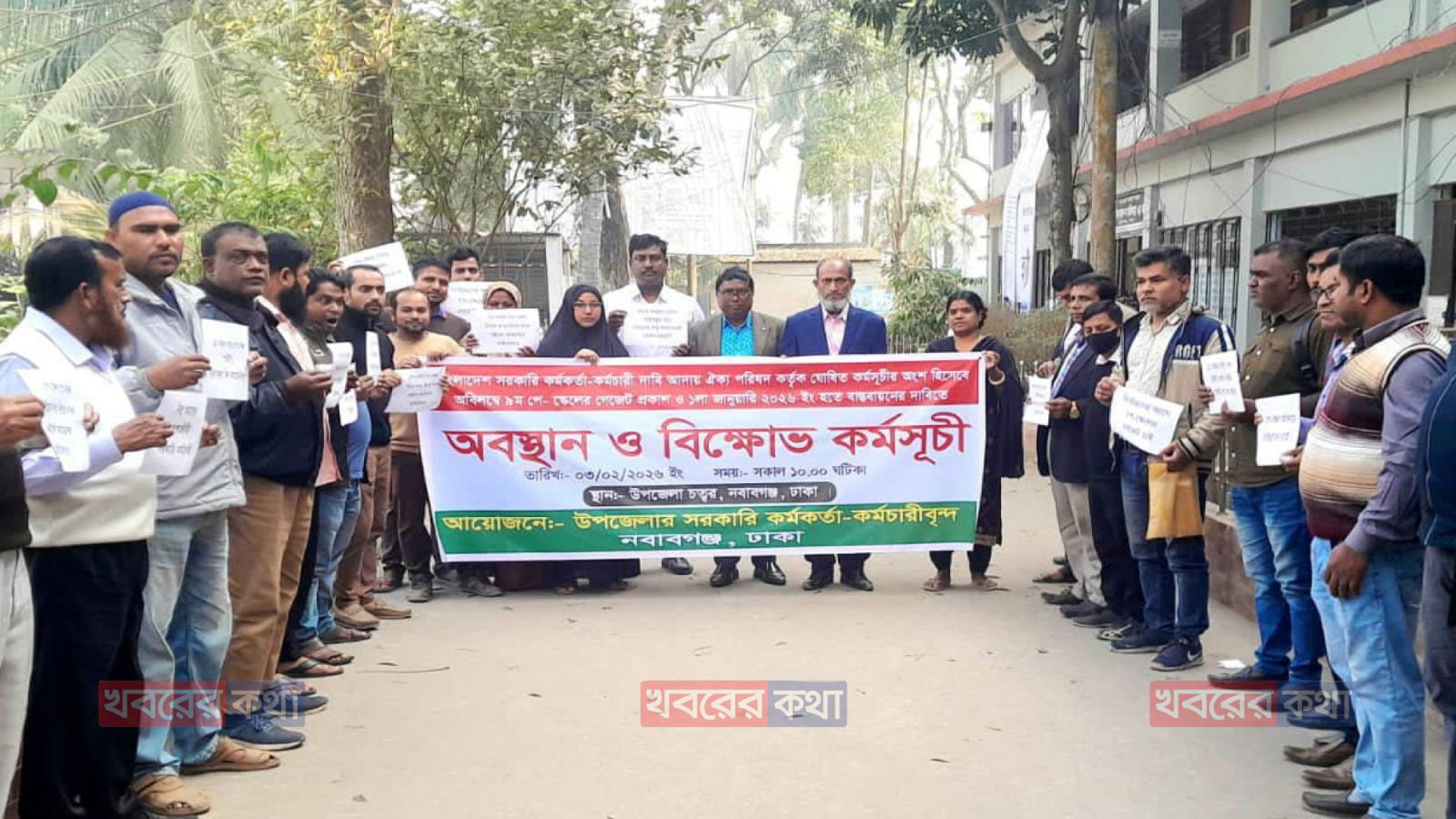 নবম পে-স্কেল বাস্তবায়নের দাবিতে নবাবগঞ্জে সরকারি কর্মকর্তাদের অবস্থান ও মিছিল