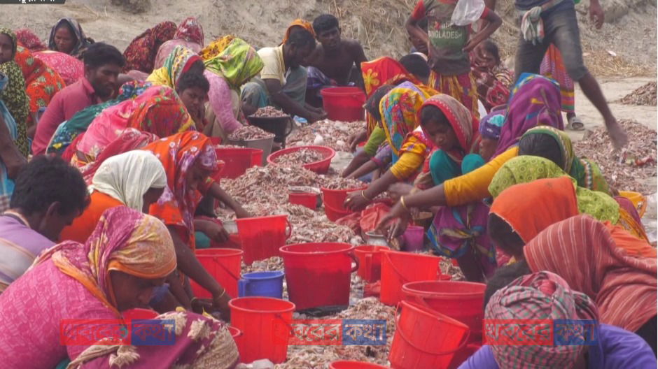 বঙ্গোপসাগরের ঢেউয়ের সঙ্গে তাল মিলিয়ে সমুদ্রতীরে চলছে টাইগার চিংড়ি আহরণের ব্যস্ততা। নভেম্বর থেকে মার্চ এই মৌসুমে পটুয়াখালী, ভোলা
