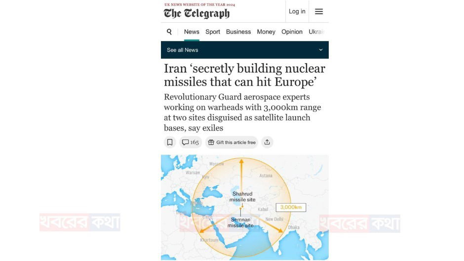 ইরান গোপনে পারমাণবিক ক্ষেপণাস্ত্র তৈরি করছে: দাবী দ্য টেলিগ্রাফের