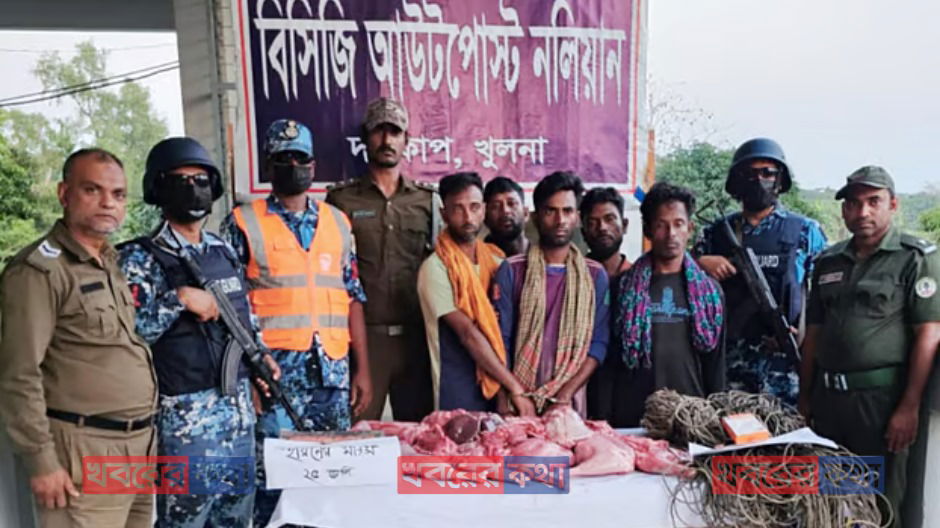 কোস্টগার্ডের অভিযান: সুন্দরবন থেকে ২৫ কেজি হরিণের মাংসসহ হরিণ শিকারী চক্রের ৫ সদস্য গ্রেপ্তার