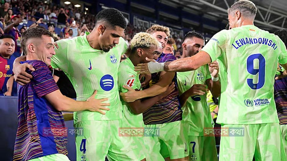 বার্সেলোনার গৌরবময় ইতিহাসে লেভান্তের মাঠে যুক্ত হলো একটি নতুন অধ্যায়। দুই গোল পিছিয়ে থেকেও ৩-২ গোলের জয়ে ম্যাচ