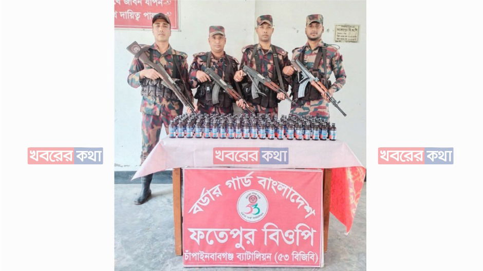 চাঁপাইনবাবগঞ্জের শিবগঞ্জের ফতেপুর সীমান্তে ভারতীয় ১৪৭ বোতল ফেন্সিডিল আটক করেছে ৫৩