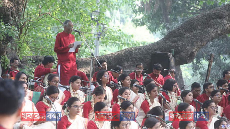 নতুন সূর্যোদয়ের সঙ্গে রমনার বটমূলে বেজে উঠেছিল বাংলা নববর্ষ ১৪৩২-এর আগমনী সুর। ছায়ানটের আয়োজনে হাজারো মানুষের কণ্ঠে মিলেছিল গান,
