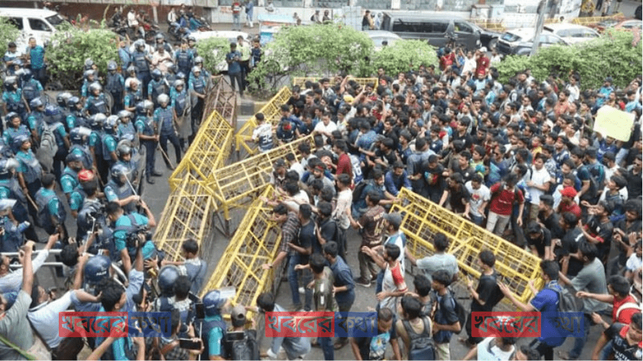 জবি শিক্ষার্থীদের ওপর টিয়ারশেল-সাউন্ড গ্রেনেডে আহত শতাধিক শিক্ষার্থী