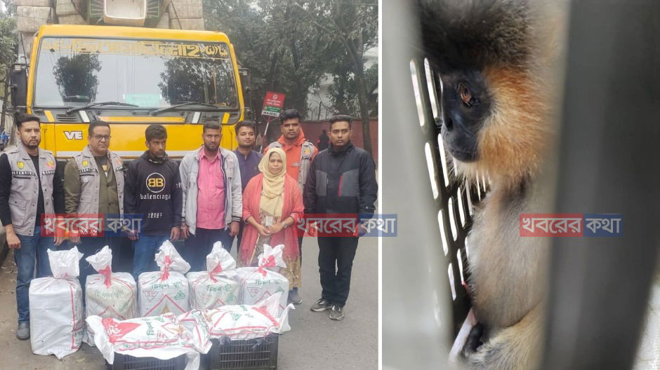 রাজধানীর যাত্রাবাড়ী এলাকা থেকে বিপন্ন প্রজাতির ৮টি মুখপোড়া হনুমান উদ্ধারসহ বন্যপ্রাণী পাচারকারী চক্রের দুই সক্রিয় সদস্যকে গ্রেফতার করেছে ডিএমপির
