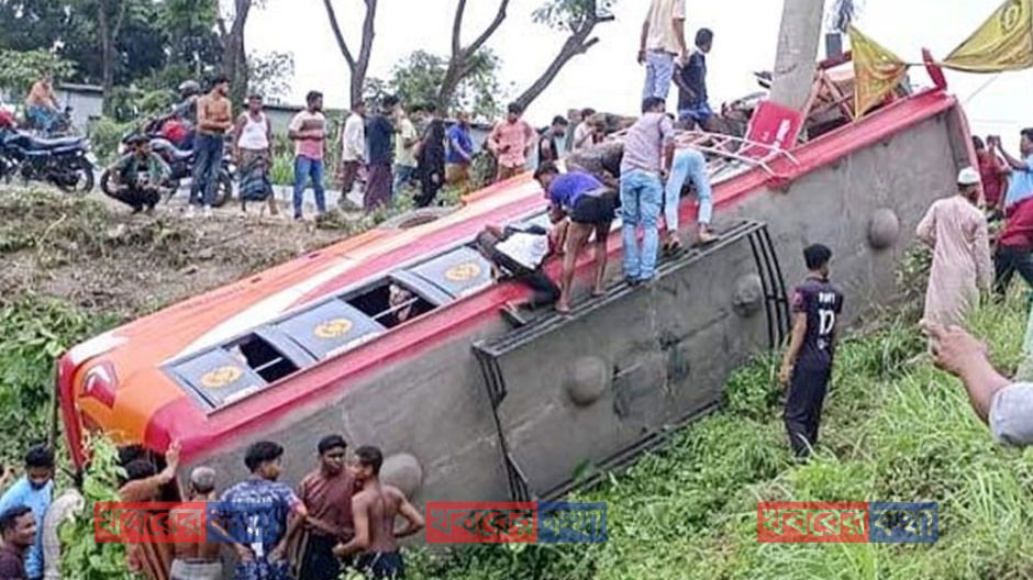 বাস খাদে পড়ে ফরিদপুরে প্রাণ গেল পাঁচজনের, আহত অন্তত ৩২