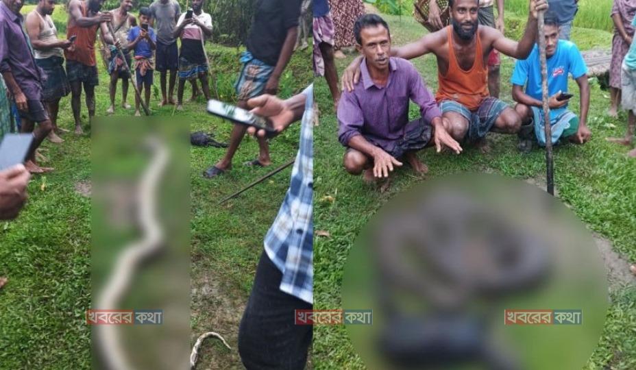 বড়লেখায় ছাগল খাওয়ায় বিশাল আকৃতির অজগরকে হত্যা করলো গ্রামবাসী
