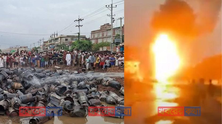 মহাসড়কে ২০০ সিলিন্ডারসহ উল্টে গেল ট্রাক, একের পর এক বিস্ফোরণ