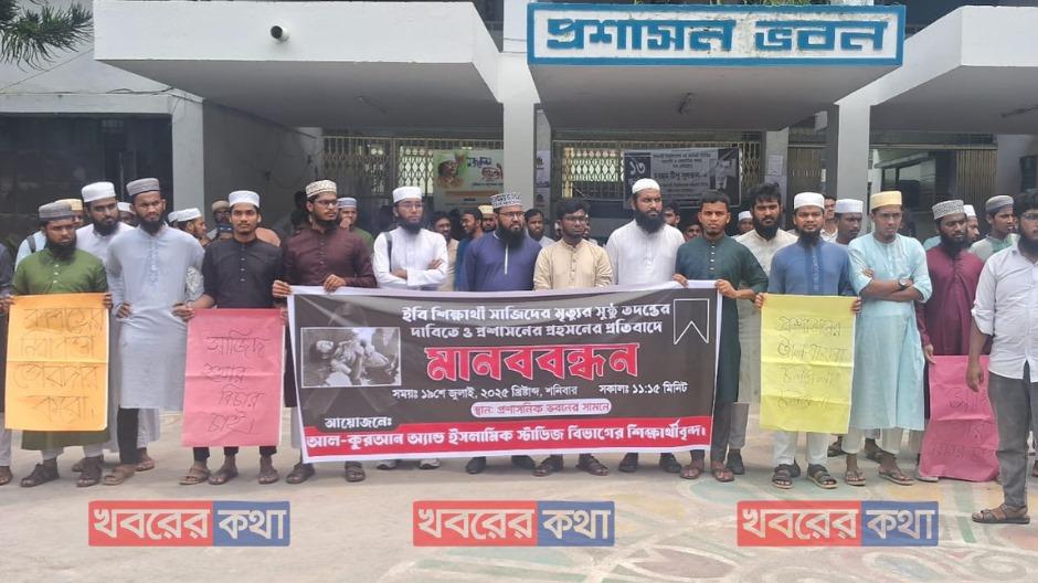 সাজিদের মৃত্যুতে ইবিতে বিক্ষোভ, তদন্তের দাবিতে শিক্ষক-শিক্ষার্থীদের মানববন্ধন ও গায়েবানা জানাজা