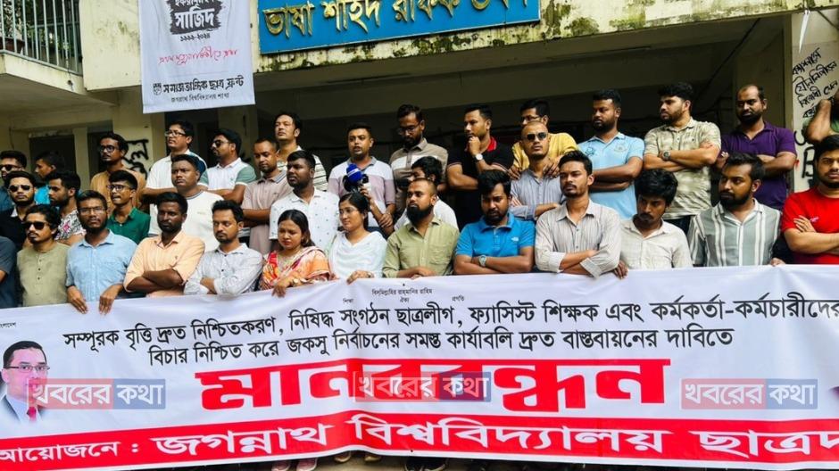 আবাসন ভাতাসহ তিন দাবিতে জবি ছাত্রদলের মানববন্ধন