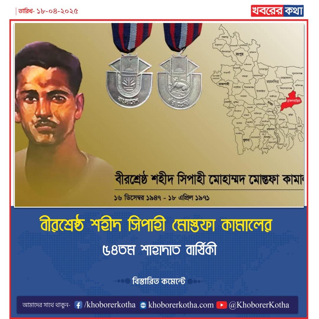 আজ ১৮ এপ্রিল, বীরশ্রেষ্ঠ শহীদ সিপাহী মোস্তফা কামালের ৫৪তম শাহাদাত বার্ষিকী। এই দিনে জাতি গভীর শ্রদ্ধার সঙ্গে স্মরণ
