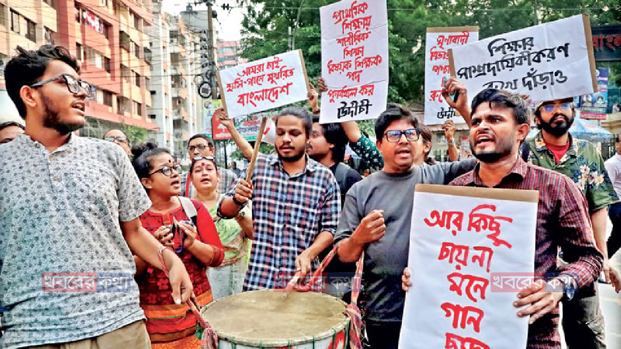 প্রাথমিকে সংগীত ও শারীরিক শিক্ষার শিক্ষক নিয়োগ বাতিলের সিদ্ধান্তের প্রতিবাদে রাজধানীতে উদীচী শিল্পীগোষ্ঠীর গানের মিছিলে পুলিশ বাধা দেয়। তবে