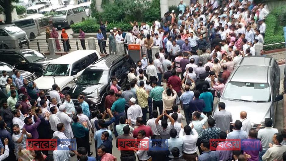 সচিবালয়ে দপ্তর ছেড়ে নিচে নেমে কর্মচারীদের বিক্ষোভ, ‘কালাকানুন’ প্রত্যাহারের দাবি