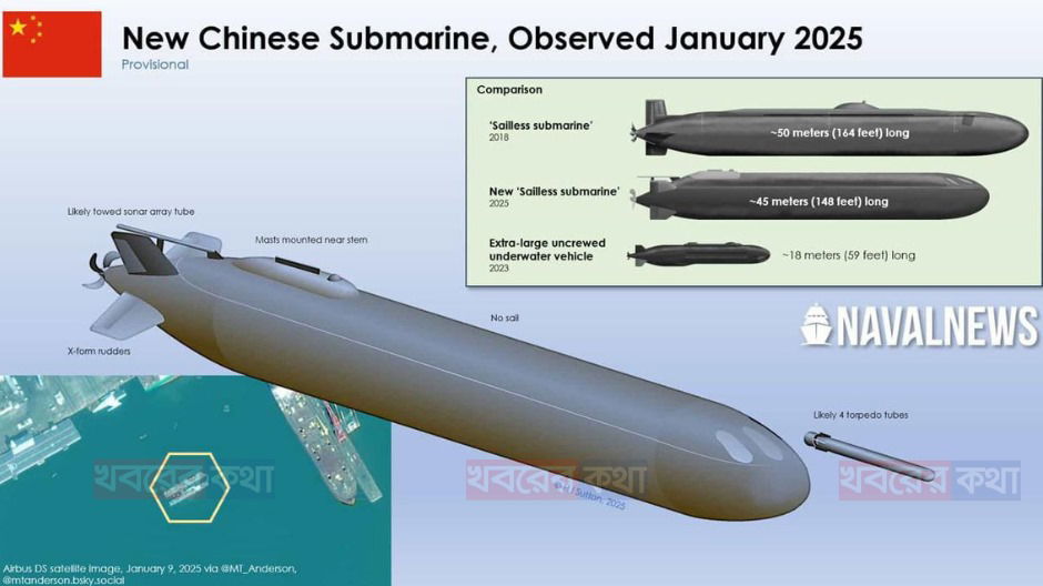 চীন আবারও পশ্চিমা বিশ্লেষকদের চমকে দিয়েছে এক রহস্যময়, অত্যাধুনিক সাবমেরিনের মাধ্যমে। স্যাটেলাইট চিত্রে একটি শিপইয়ার্ডে দেখা মিলেছে এর, যা