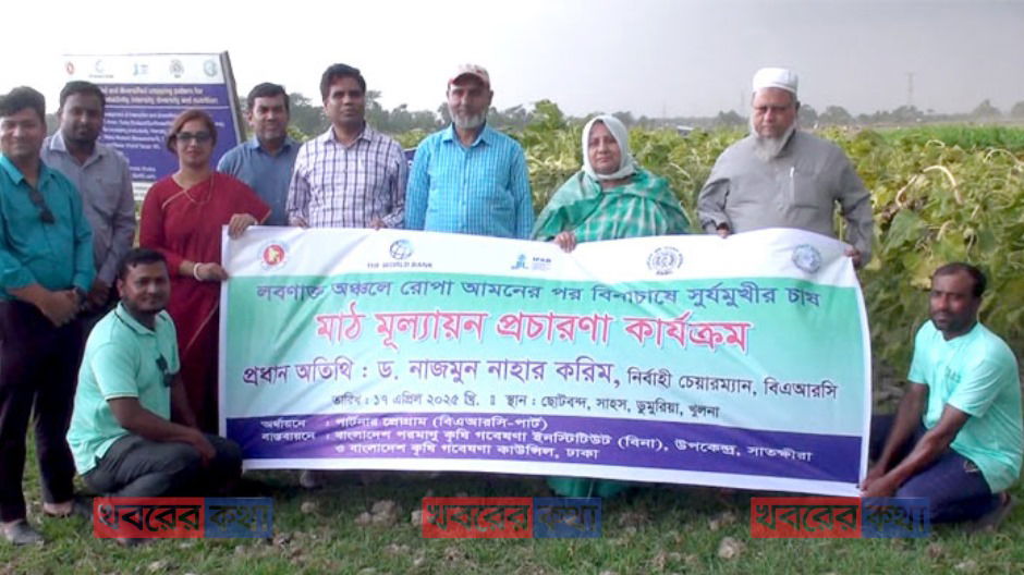 বিনার গবেষণা কার্যক্রমের অংশ হিসেবে সম্প্রতি খুলনার ডুমুরিয়া উপজেলার সাহস ইউনিয়নে অনুষ্ঠিত হয় মাঠ পর্যায়ের একটি মূল্যায়ন সভা। যেখানে সূর্যমুখী চাষে লবণাক্ত জমির সম্ভাবনা ও কৃষকদের আগ্রহ বাড়ানো নিয়ে আলোচনা হয়।