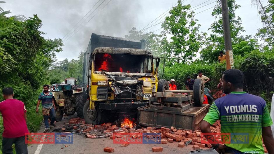খাগড়াছড়িতে কাভার্ডভ্যান ও ট্রাক্টরের সংঘর্ষে অগ্নিকাণ্ড, আহত ৪