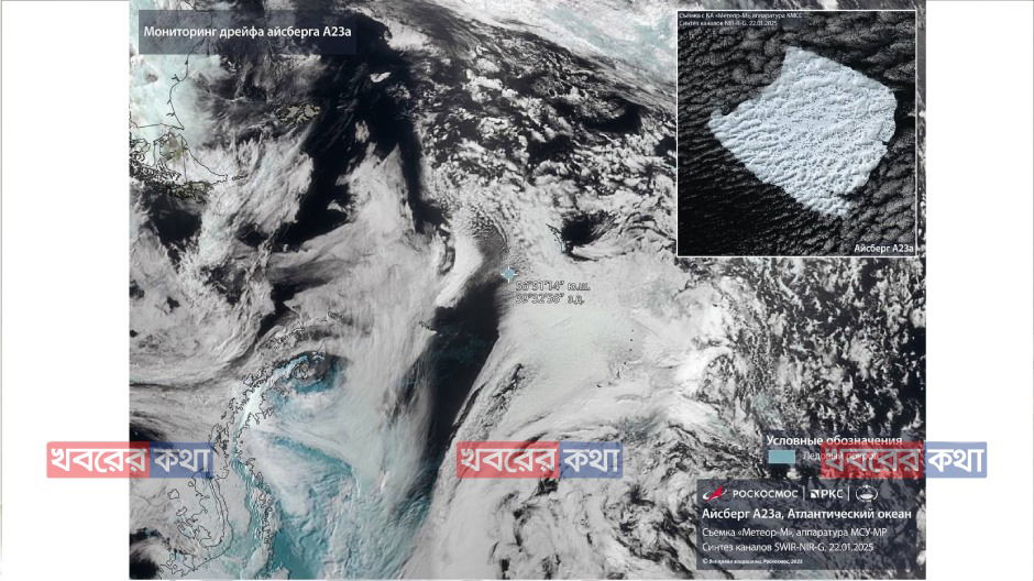 রাশিয়ার স্যাটেলাইট মেটিওর-এম সম্প্রতি বিশ্বের বৃহত্তম হিমশৈল A23a-এর চমৎকার ছবি ধারণ করেছে। এই বিশাল হিমশৈলের আয়তন প্রায় ৩,৬৭২ বর্গকিলোমিটার, যা যুক্তরাষ্ট্রের রোড আইল্যান্ড রাজ্যের সমান। ওজন প্রায় ১ বিলিয়ন টন, যা এক নজরে প্রকৃতির অসীম শক্তির প্রমাণ।